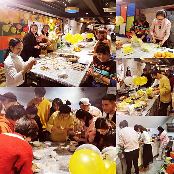 今天,小伙伴們一起做好吃的,有餃子,有火鍋,還有硬菜……這個過程中,涌現出了好多能手,黃海鳳的紅燒雞塊…王丹丹的酸菜魚…王玲和任艷柳包餃子,又快又好看……還有我們其他小伙伴,洗菜、切菜、擺盤…動作麻利,相互配合著,真是準備得又快又好。