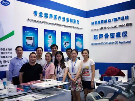 此次展會由國藥勵展展覽有限責任公司主辦,國藥勵展展覽有限責任公司承展,在深圳會展中心盛大舉行,本次展會共有來自全國各地的近500家廠商參展,展會上展出的產品涉及臨床診斷設備、診斷試劑、POCT、家用診斷設備等、康復器械等。展會持續到第三天和第四天仍然精彩紛呈、高熱繼續,展商與專業觀眾踴躍交流的場面火爆。南京科進也高溫不下,持續吸引了不少客戶前來咨詢產品。下圖為科進俞總為客戶介紹超聲骨密度儀