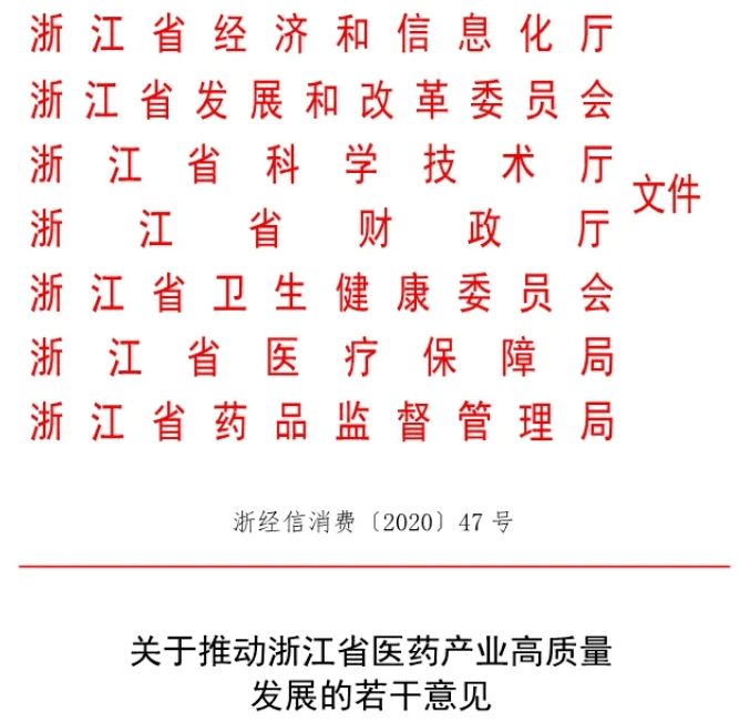 近日,浙江省發展改革委、省經信廳、省科技廳、省財政廳、省衛生健康委、省醫保局、省藥監局共同印發《關于推動浙江省醫藥產業高質量發展的若干意見》(下稱《意見》)。